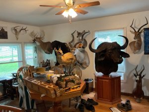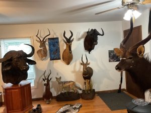 Kudos to you and your team for ALL of your hard work!! Tom was amazed at the crating job! He couldn’t believe your team fit all that into that crate and that it arrived in one piece. (There was one ear kinked by the top, but I was able to fix it. Who knows when and where that happened! ) I am pleased at the overall condition of the trophies. (I could critique the actual taxidermy work but that’s definitely not on you!)